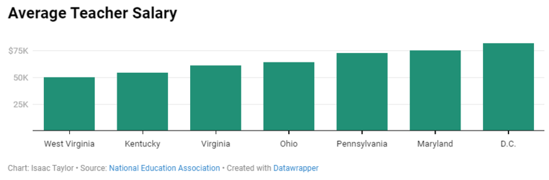 According to the National Education Association, Maryland, Pennsylvania and the District of Columbia are the highest-paid teachers in our region, followed by Ohio, Virginia and Kentucky. But West Virginia is last in the nation.